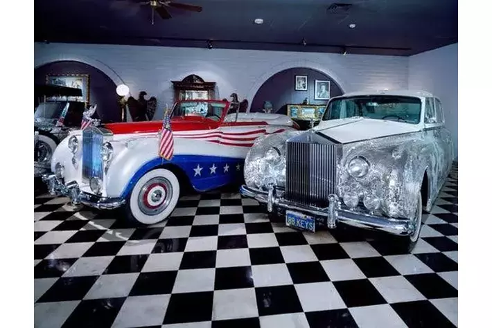 もう一人の型破りな音楽界の巨匠がリベラーチェです。きらびやかで多才な彼は、1950~60年代にテレビ番組とラスベガスでの長期公演により、世界で最も高い報酬を誇るエンターテイナーとなりました。「ミスター・ショーマンシップ」というニックネームを得た彼の豪奢な演出のひとつに、1961年式ファントムVがあります。この車は小さな鏡片で覆われており、ラスベガス・ヒルトンでの長期公演では、ステージ上に登場し、観客を魅了しました。このファントムVは、数々の受賞歴を持つリベラ―チェの伝記映画『恋するリベラーチェ(Behind the Candelabra)』にも登場し、リベラ―チェを演じるマイケル・ダグラスがその短くも印象的な走行シーンを再現しています。