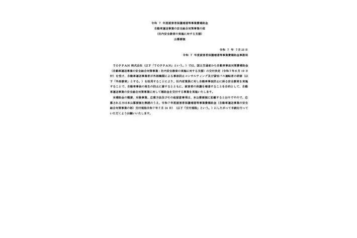 【募集要項】令和7年度被害者保護増進等事業費補助金_自動車運送事業の安全総合対策事業の部(社内安全教育)_公募要領