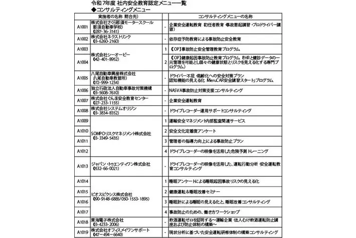 【認定されたコンサルティングメニュー】 補助対象機器一覧_社内安全教育の実施に対する支援(事故防止コンサルティングの活用事業)