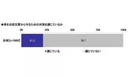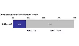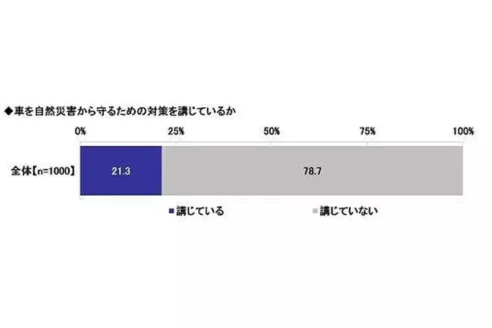 全回答者1,000名に、車を自然災害から守るための対策を講じているかを聞いたところ、「講じている」は21.3%、「講じていない」は78.7%となりました。