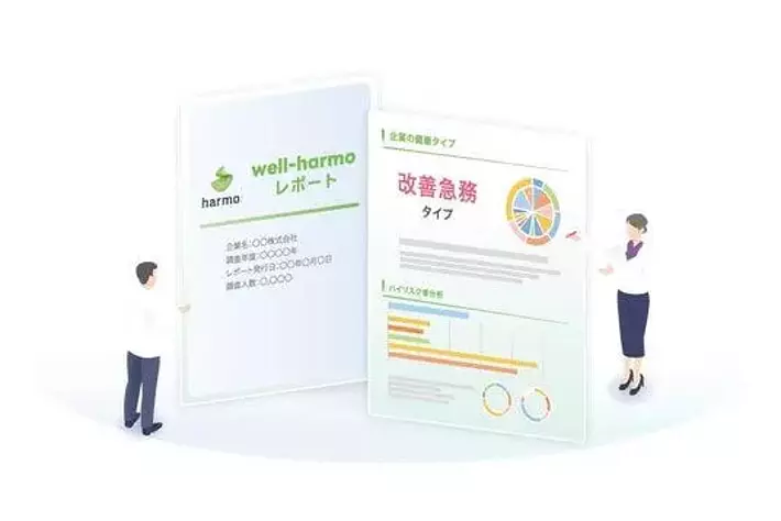 harmoが提供する「well-harmoレポート」は、企業が保有する従業員の健康診断データを基に、企業全体の健康状態や事故リスクをスコア化。専門家が経営層に直接レポート内容を解説し、組織的な健康課題の把握と具体的な対策実行までをワンストップで支援します。