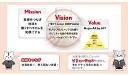 ジェイテクトは、「技術をつなぎ、地球と働くすべての人を笑顔にする」というミッションに基づき、2030年までに目指す姿としてJTEKT Group 2030 Vision「モノづくりとモノづくり設備でモビリティ社会の未来を創るソリューションプロバイダー」を掲げています。