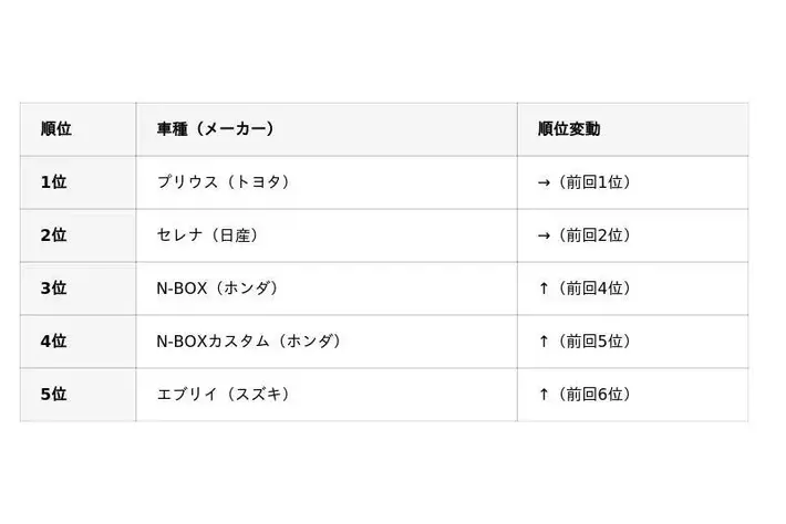 「車選びドットコム」の市場動向から調査した、国産車の2025年7月中古車販売ランキングを紹介します。