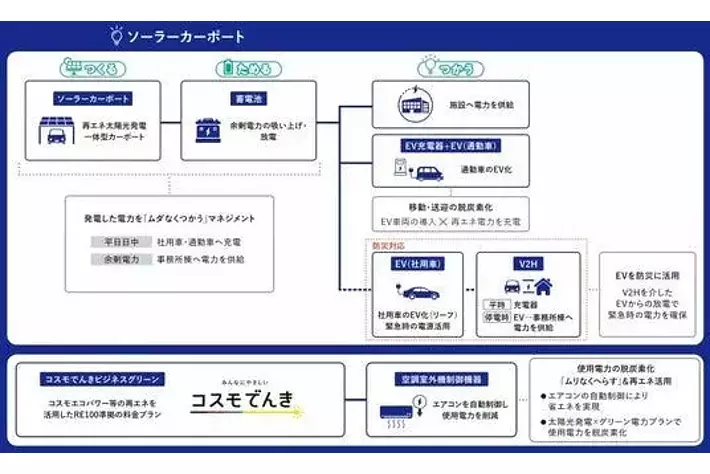 再エネ電力(コスモでんきビジネスグリーン)およびEV関連商材(コスモMyカーリース)の提供