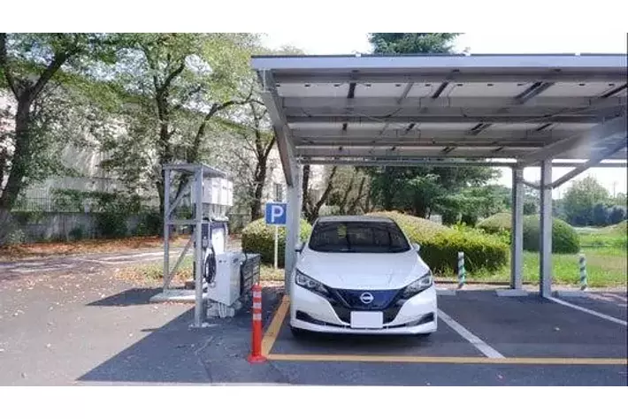 中央研究所に設置したソーラーカーポート、蓄電池、EV車両と充電設備