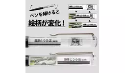 ペン本体を傾けると、藤原拓海が駆る“白黒ツートンのハチロク”をイメージした「藤原とうふ店(自家用)」のフローターがゆっくりと移動します。作中の興奮と疾走感を手元で味わうことができます。