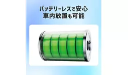 バッテリーレスで安心車内放置も可能で、長期使用時も安全。