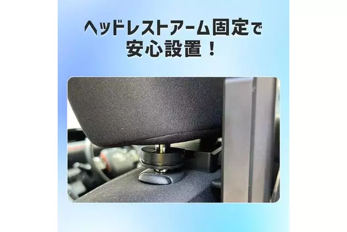 ヘッドレストアーム固定で安定設置付属ブラケットをアームに着けてしっかり固定しできます。