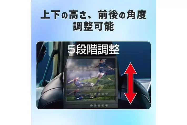 高さ調節可能モニターをお好みの高さに調節可能上下の高さや前後の角度調節が可能です。後部座席で快適に映像が楽しめます。