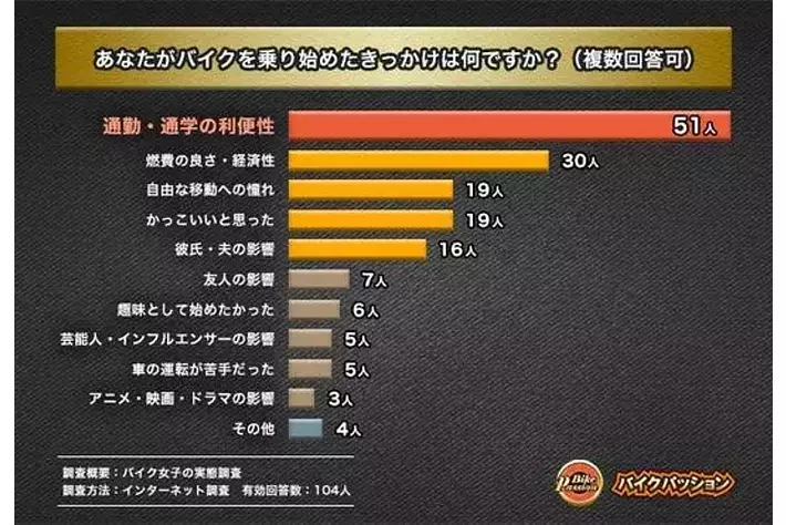 - 女性がバイクを始めたきっかけ『通勤・通学の利便性』が最多の回答!実用性重視の傾向が明らかに