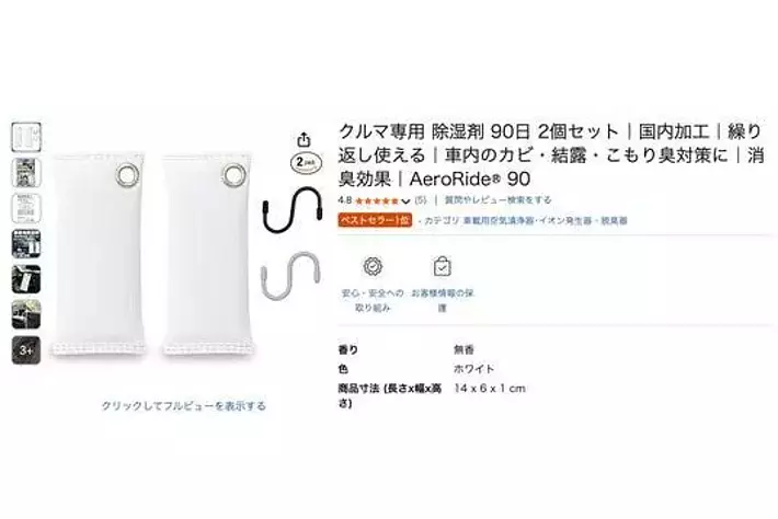 車用除湿剤AeroRide90がAmazon売上1位。車内の結露・カビ臭対策を専用設計で実現。また、Amazonの「車&バイク」カテゴリーで、売上ランキング100位以内を達成。