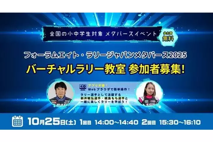 株式会社フォーラムエイト(本社:東京都港区港南2-15-1、社長:伊藤裕二、URL:https://www.forum8.co.jp)は、タイトルスポンサーを務めるWRC FORUM8 Rally Japan 2025(2025年11月6日~9日)にて、昨年に引き続きメタバース企画「フォーラムエイト・ラリージャパンメタバース2025」を実施。本年は、新たなコンテンツとして「ぬりえメタバース」および「Rally NFTトレンドスポット」を提供いたします。