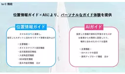 本イベントで提供した「CONIQ AI GUIDE(仮称)」は、トヨタ・コニック・プロとAtlas株式会社(本社:東京都渋谷区、代表取締役社長:宮崎 悠生)が共同で開発を進めています。スマートフォン端末の位置情報と連携した音声ガイドと、特定エリアの情報を学習させ、そのエリアに特化したAIによる質問回答などコンシェルジュ機能の提供が可能です。また、事業者自身でコンテンツを作成することが可能なダッシュボード機能(管理画面機能)も実装しており、低コストでの観光コンテンツ制作が可能です。