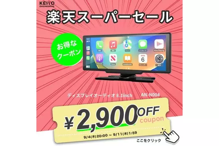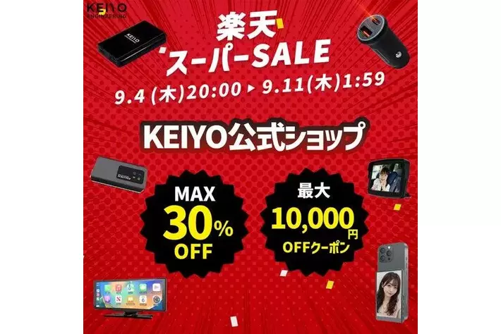 楽天スーパーSALE開催!KEIYOの車載エンタメグッズやディスプレイオーディオをはじめ、ドライブを快適に楽しめる幅広いアイテムがセール対象に。お得に手に入れる大チャンス