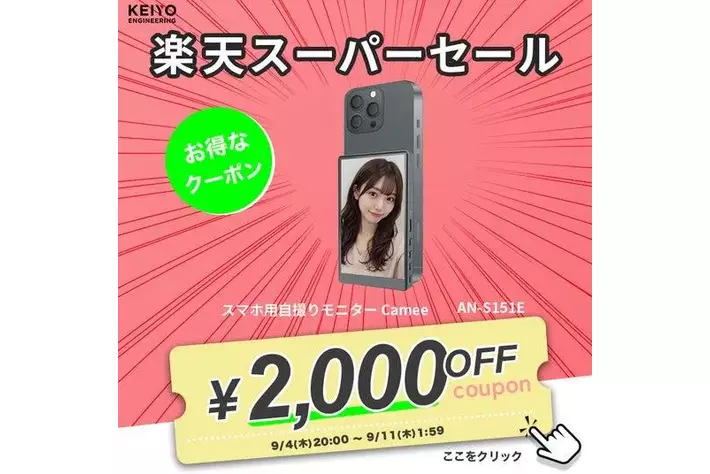 KEIYOの人気アイテムが楽天スーパーSALEに登場!ディスプレイオーディオや車載エンタメグッズをはじめ、幅広い商品がお得に。さらに今話題の自撮りモニターは2,000円OFFで手に入るチャンス