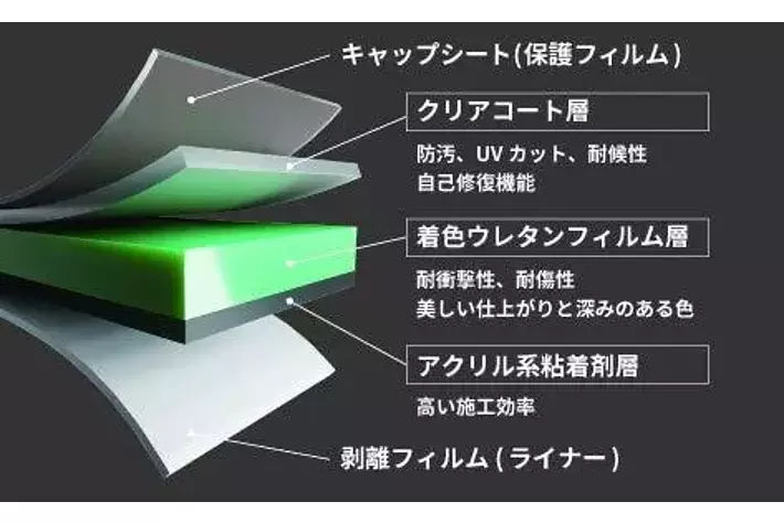 飛び石、生活傷、汚れへの耐久性のある着色ウレタンフィルムは全26色となっており、光沢や艶消しタイプ、フリップなど幅広くラインナップしています。