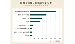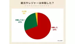 アンケートでは、「空き時間を使って観光やレジャーを楽しんだ」と回答した人が全体の約69%にのぼりました。全体のうち、2/3以上の人が観光やレジャーなどを体験しています。