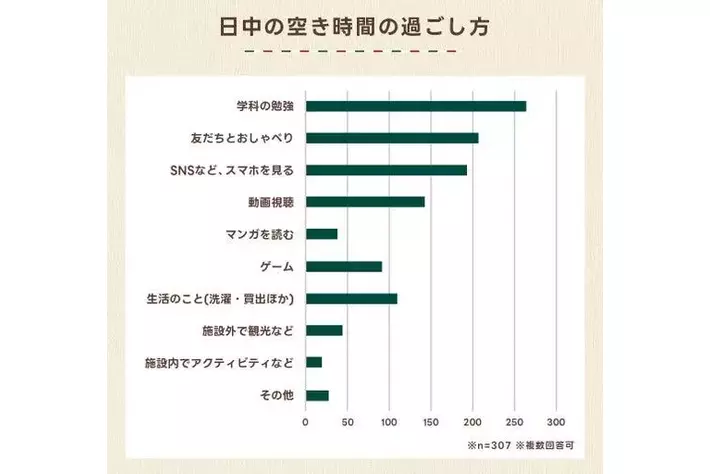 空き時間の過ごし方。日中は「勉強&交流」、夜は「リラックス&生活タイム」