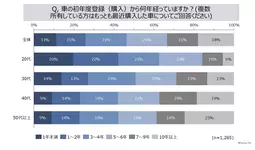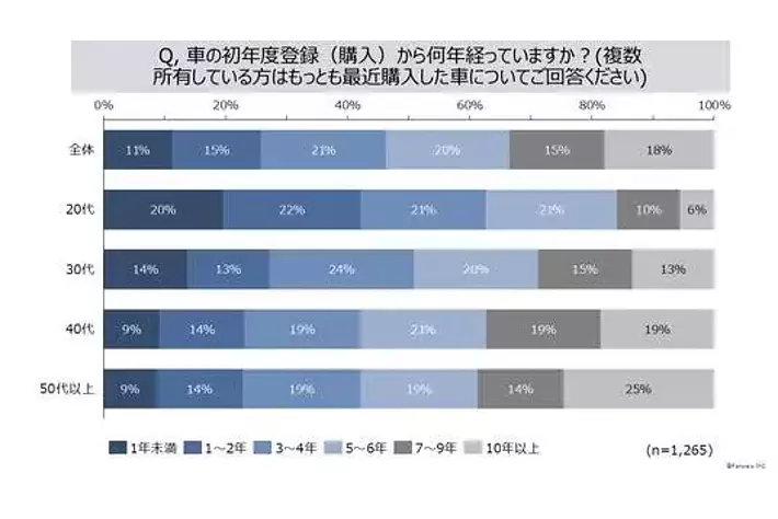 1.所有している車は初年度登録から「3~4年」21%、「5~6年」20%