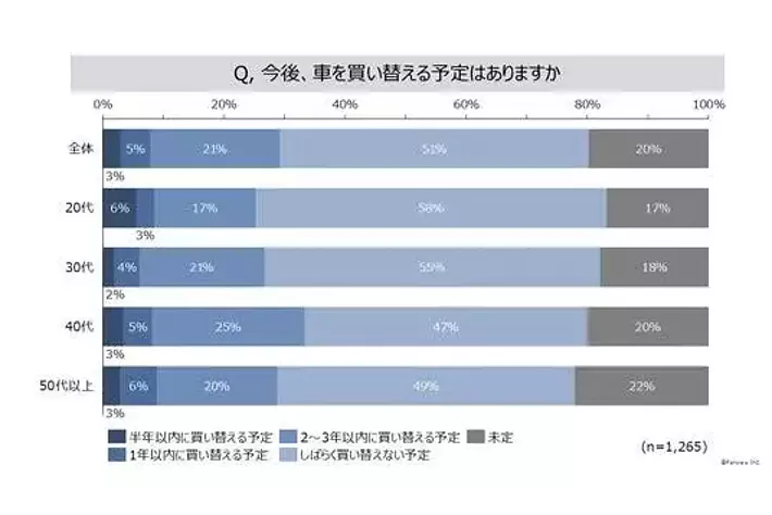 お客さまの声を最先端の分析でファン増加につなげる企業、株式会社ファンくる(本社:東京都千代田区、代表取締役社長:山口敬人)は、「ファンくる」会員を対象に、定期的に消費者の意識調査を実施しています。今回は現在所有中のマイカーについて、所有している年数や買い替え予定などを「ファンくる」会員1,265名(男性313名、女性952名)に調査を実施しました。