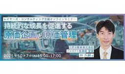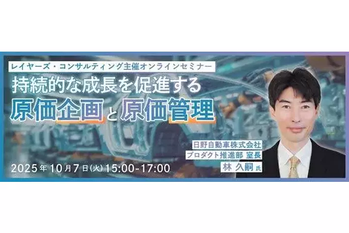 株式会社レイヤーズ・コンサルティング(東京都品川区、代表取締役CEO:杉野 尚志、以下:レイヤーズ)は、オンラインセミナー『持続的な成長を促進する原価企画と原価管理』を2025年10月7日(火)に開催することを発表いたします。