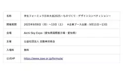 自動車内装の総合企業、林テレンプ株式会社(本社:名古屋市中区、代表取締役社長:林 貴夫)は、未来のモビリティを担う学生たちの革新的な挑戦を支えるため、2025年9月8日(月)~13日(土)にAichi Sky Expo(愛知県国際展示場)で開催される『学生フォーミュラ日本大会2025-ものづくり・デザインコンペティション-』に協賛し、企業ブースを初出展します。