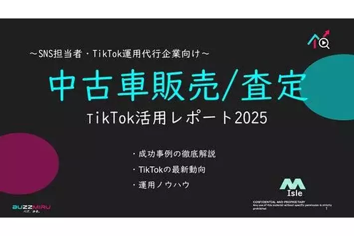 TikTok分析ツール 「BUZZMIRU」を販売する株式会社Isle(本社:東京都新宿区、共同代表:西森大祐・成宮邦亮)は、自動車業界のSNSご担当者さま向けに 『2025年版 TikTokトレンドレポート』 を無料公開しました。