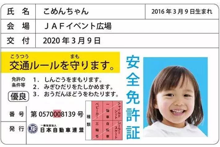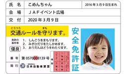 JAFはこのイベントにブースを出展し、来場されるお子さんを対象に、自動車運転免許証とそっくりな「子ども安全免許証」を無料発行します。