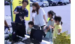 交通安全クイズに挑戦してもらい、その場で撮影した顔写真入りの免許証型のカードを発行します。