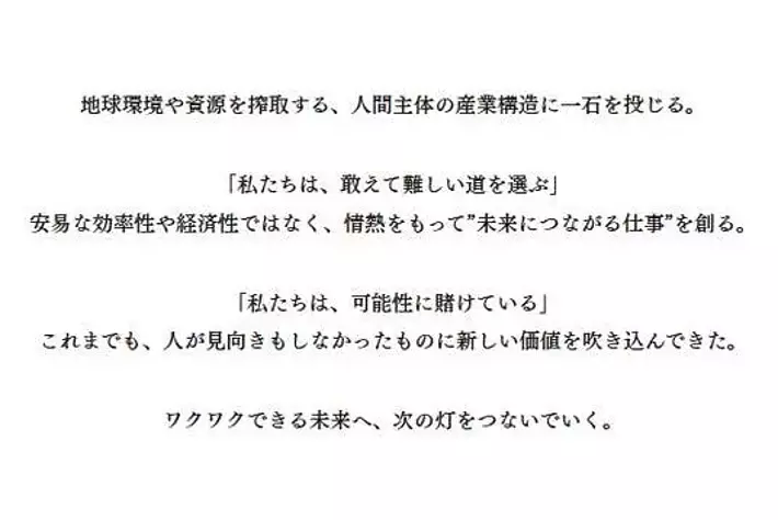 VISIONの一貫性:「環境と人の関係性に異端な解を実現し続ける」を創業以来掲げ、災害からの復活や事業拡大を経てもぶらさず継続。