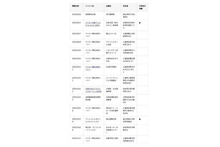 ~全国各地域でも子ども向け自動車整備士体験イベントを開催予定~