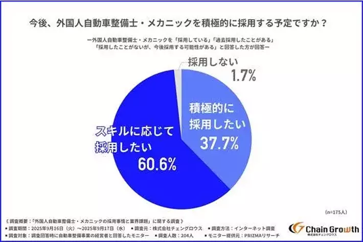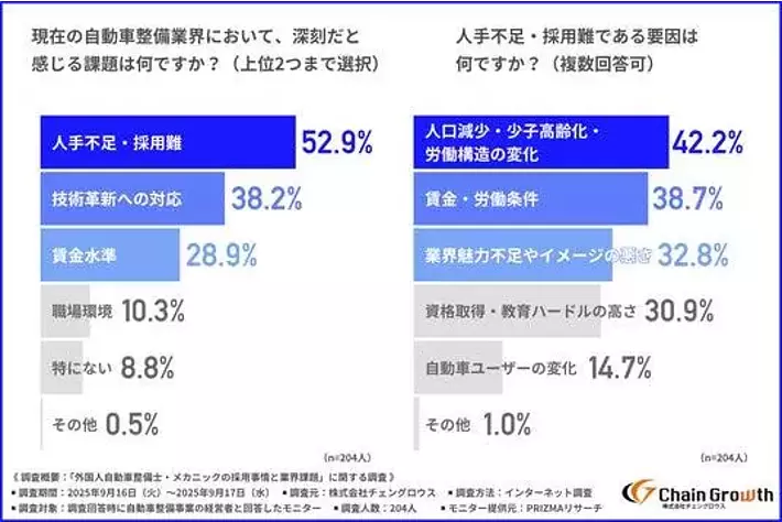 そこで今回、株式会社チェングロウス(https://www.chain-growth.com/)は自動車整備事業の経営者を対象に「外国人自動車整備士・メカニックの採用事情と業界課題」に関する調査を実施しました。