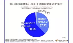 「今後、外国人自動車整備士・メカニックを積極的に採用する予定か」と尋ねたところ、以下のような回答結果になりました。