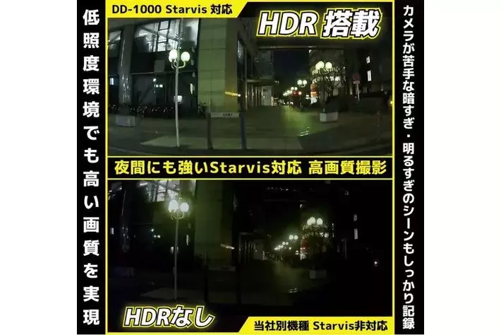 超高感度センサーで暗闇を捉えるメインカメラには夜間撮影に強いSONY製Starvisセンサーを搭載。光量が少ない環境でもノイズの少ない鮮明な映像を記録します。