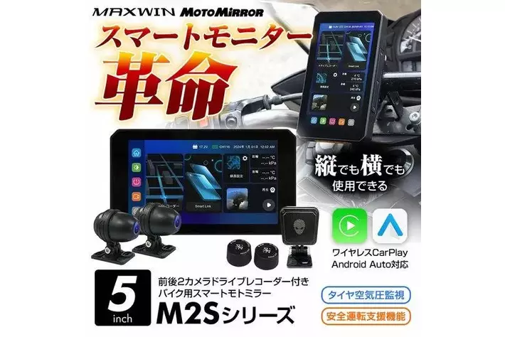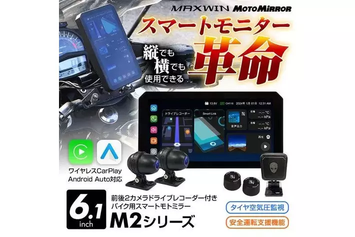 スマートフォン自体をはバイク車体に装着せず、スマートフォンとワイヤレス接続するだけで、スマートフォンに入っているナビアプリや音楽をディスプレイオーディオ上で使用できるようにする製品です。