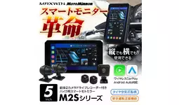 スマートフォン自体をはバイク車体に装着せず、スマートフォンとワイヤレス接続するだけで、スマートフォンに入っているナビアプリや音楽をディスプレイオーディオ上で使用できるようにする製品です。