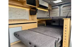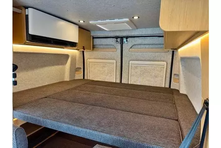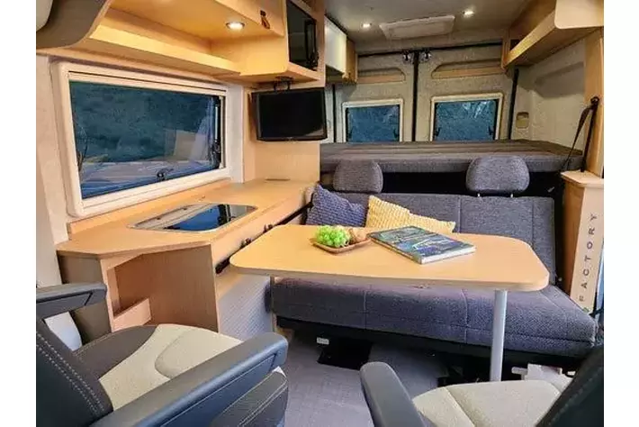 イタリア語で「喜び」を意味するその名の通り、家族全員が笑顔になれる空間を追求しました。広々とした居住空間を最大限に活かし、5名乗車・5名就寝を実現。トイファクトリーのデュカト史上最大のベッド面積を誇ります。