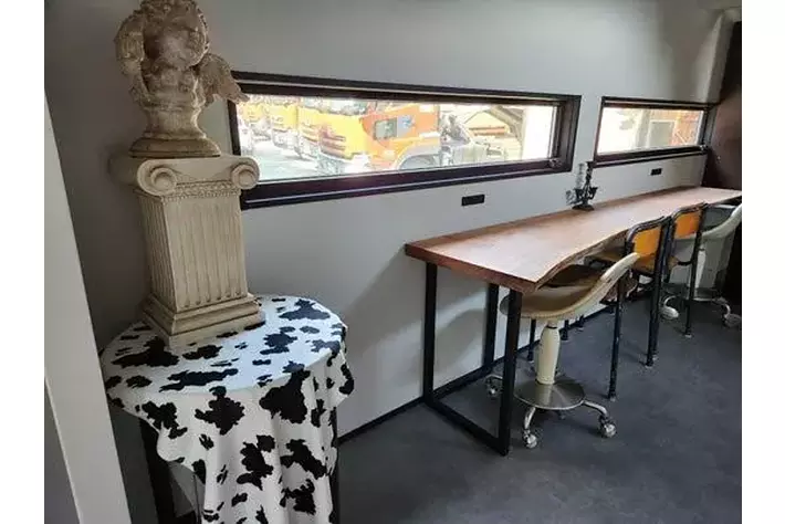 山道に構える事務所は、日中ダンプカー運送で忙しい従業員の憩いの場であり、事務スタッフや来客の方にとっても欠かせない拠点です。