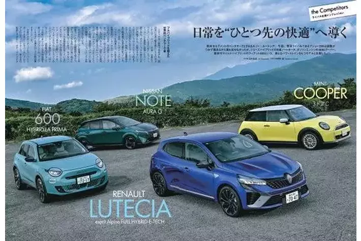 ミニクーパー、日産ノートオーラ、フィアット600HVという、日欧のパワートレーンの違うコンパクトカーたちとの比較試乗。異なる個性を見せるクルマたちの中で、ルーテシアはどんな表情を見せるのか?