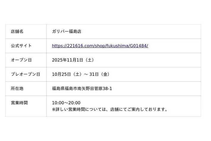 ガリバー福島店(福島県福島市) :2025年11月1日(土)