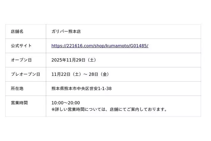 ガリバー熊本店(熊本県熊本市) :2025年11月29日(土)