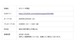 株式会社IDOM(本社:東京都千代田区丸の内二丁目7番2号 JPタワー26階、以下:IDOM)は、2025年11月、ガリバーの大型店舗を3か所にオープンいたします。