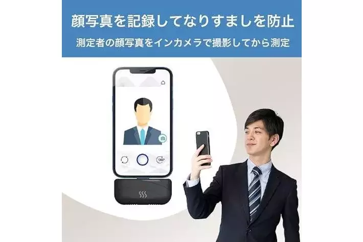 【顔写真記録機能】測定前に顔写真をインカメラで撮影してから測定するので、なりすましを防止します。 ※SKIPすることも可能です