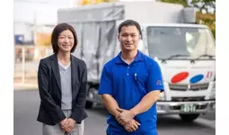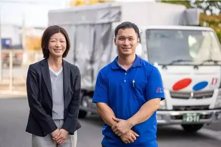 大和輸送株式会社の坂本篤子代表取締役社長左と特定技能ドライバーでベトナム出身のブイ・チョン・ギアさん右