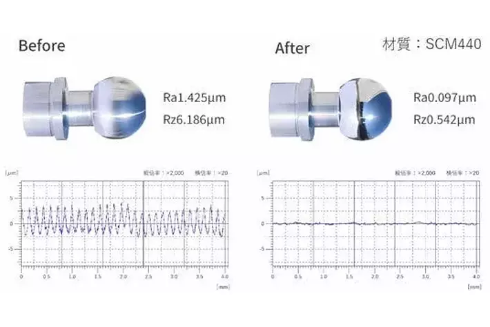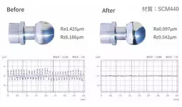 ボールスタッドやタイロッドエンドといった自動車の駆動部品は、球面形状が不可欠であり、加えて高精度かつ高品質な表面仕上げが求められるため、加工難易度が非常に高い領域です。これまで球面形状の高品質加工には、熟練の技能を必要とする専用機に依存することが多く、導入コストや運用負担が大きな課題でした。