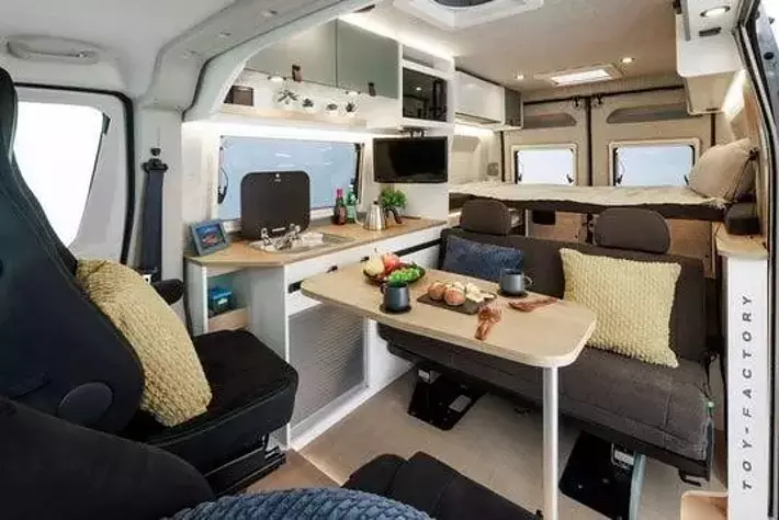 イタリア語で「喜び」を意味するその名の通り、家族全員が笑顔になれる空間を追求し、広々とした居住空間を最大限に活かし、5名乗車・5名就寝を実現。快適で洗練された内装に加え、トイファクトリーのデュカト史上最大のベッド面積を誇る設計のこのモデルは、2月の発表以降大好評です!