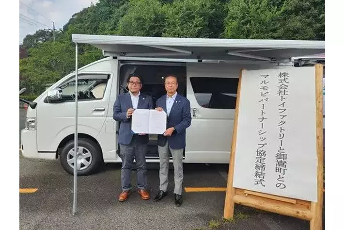 岐阜県御嵩町に新たに納入した新型車両として登場したのは、トイファクトリーがキャンピングカーの技術を応用して開発した、自治体・企業向けの多機能車両、MARU MOBI(マルモビ)。