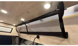 横向きシート(3人掛け)の上部には、衣類や小物をたっぷり収納できる収納棚を設置しました。