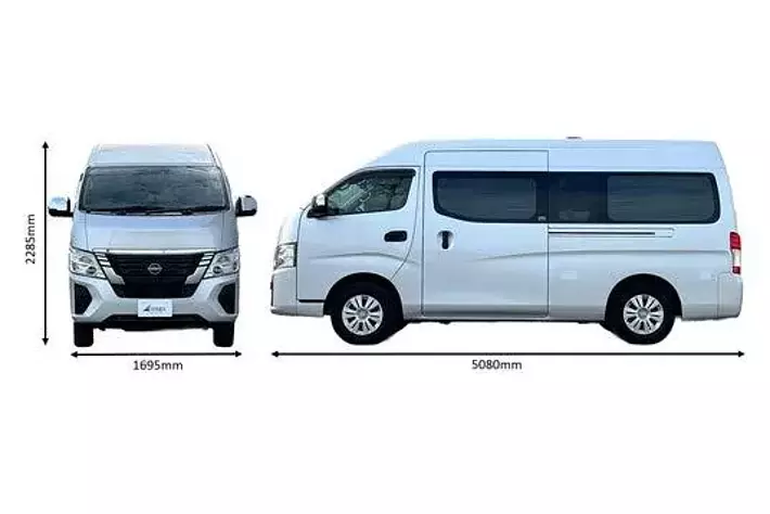サイズ:全長5,080mm×全幅1,695mm×全高2,285mm(マックスファン装着時は2,400mm)、8ナンバー、日産キャラバンスーパーロングバンベース、燃料タンク65L