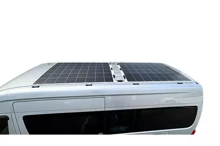 クーラーパッケージプラス2を選択すると、リチウムイオンバッテリー500Ah、インバーター3000W、12Vクーラー専用外部電源口、ポータブルバッテリー電源口、外部電源装置(50Aチャージャー)、100Vコンセント、そして、断熱加工がセットで搭載されます。また、オプションで薄型ソーラーパネル250Wを最大2枚追加することも可能です。